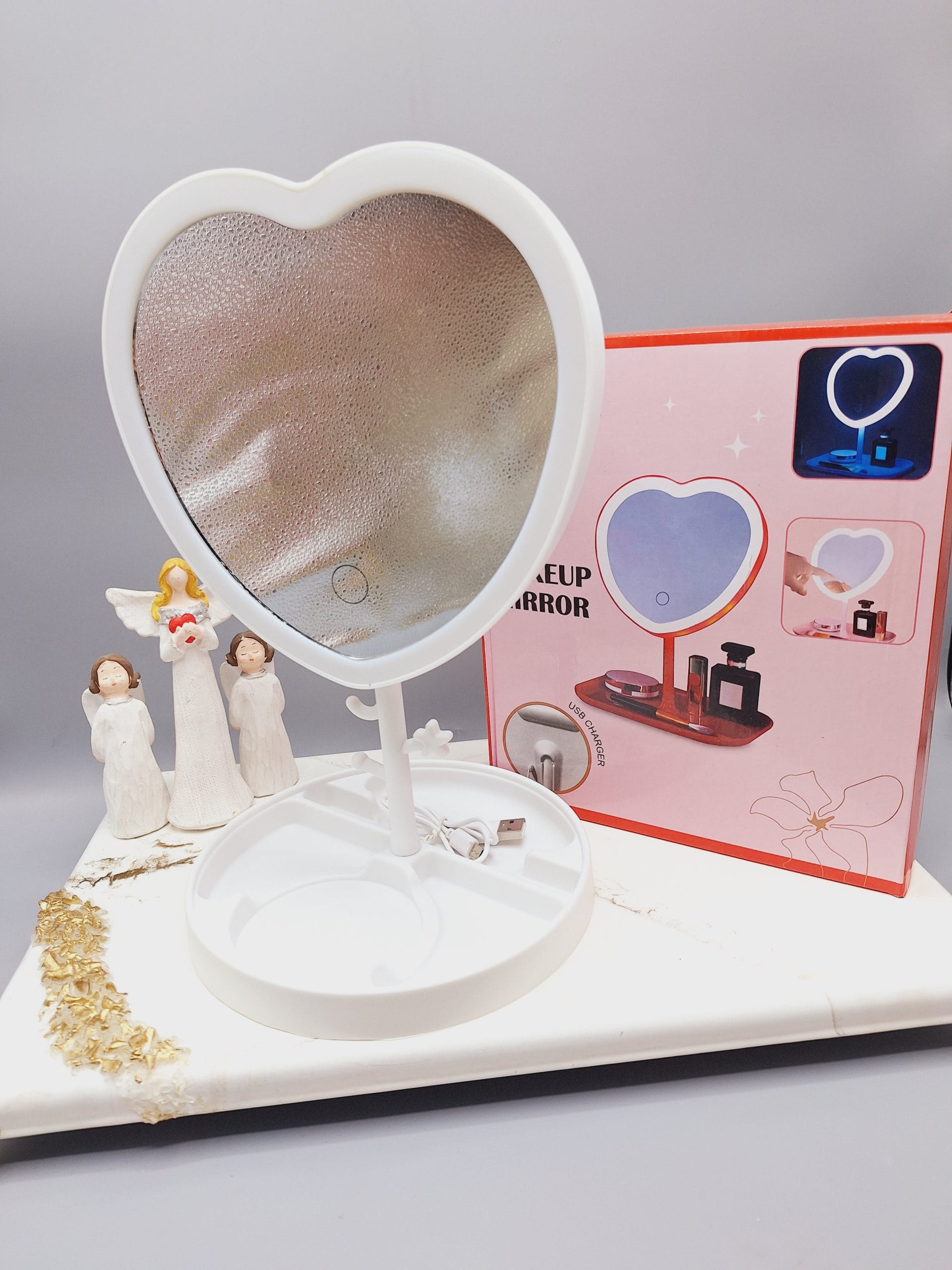 آینه رینگ لایت دار لمسی بسیار پرطرفدار مدل قلبی زیبا( رنگ سفید )