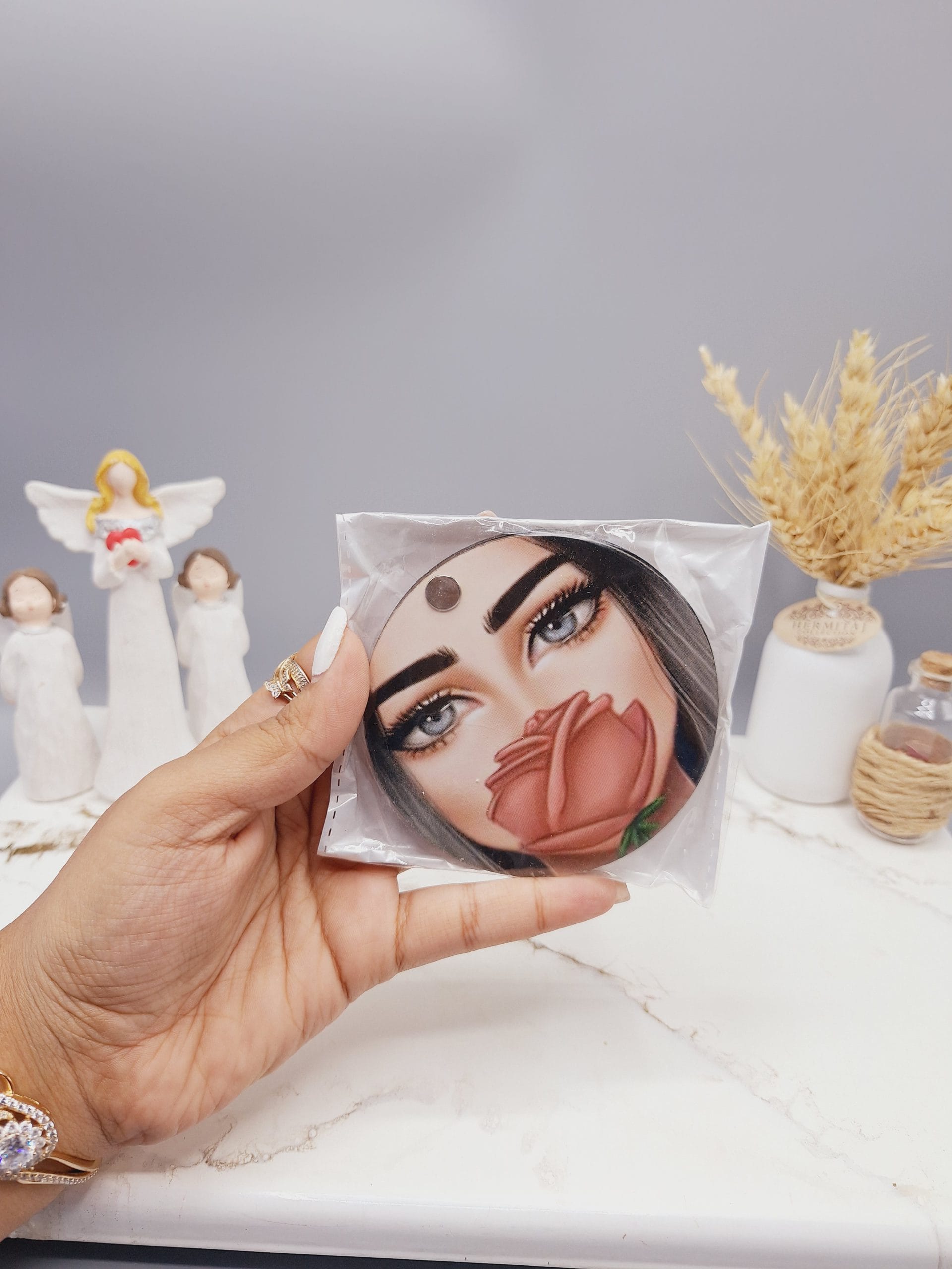 آینه گرد مدل دختر طرح رندم