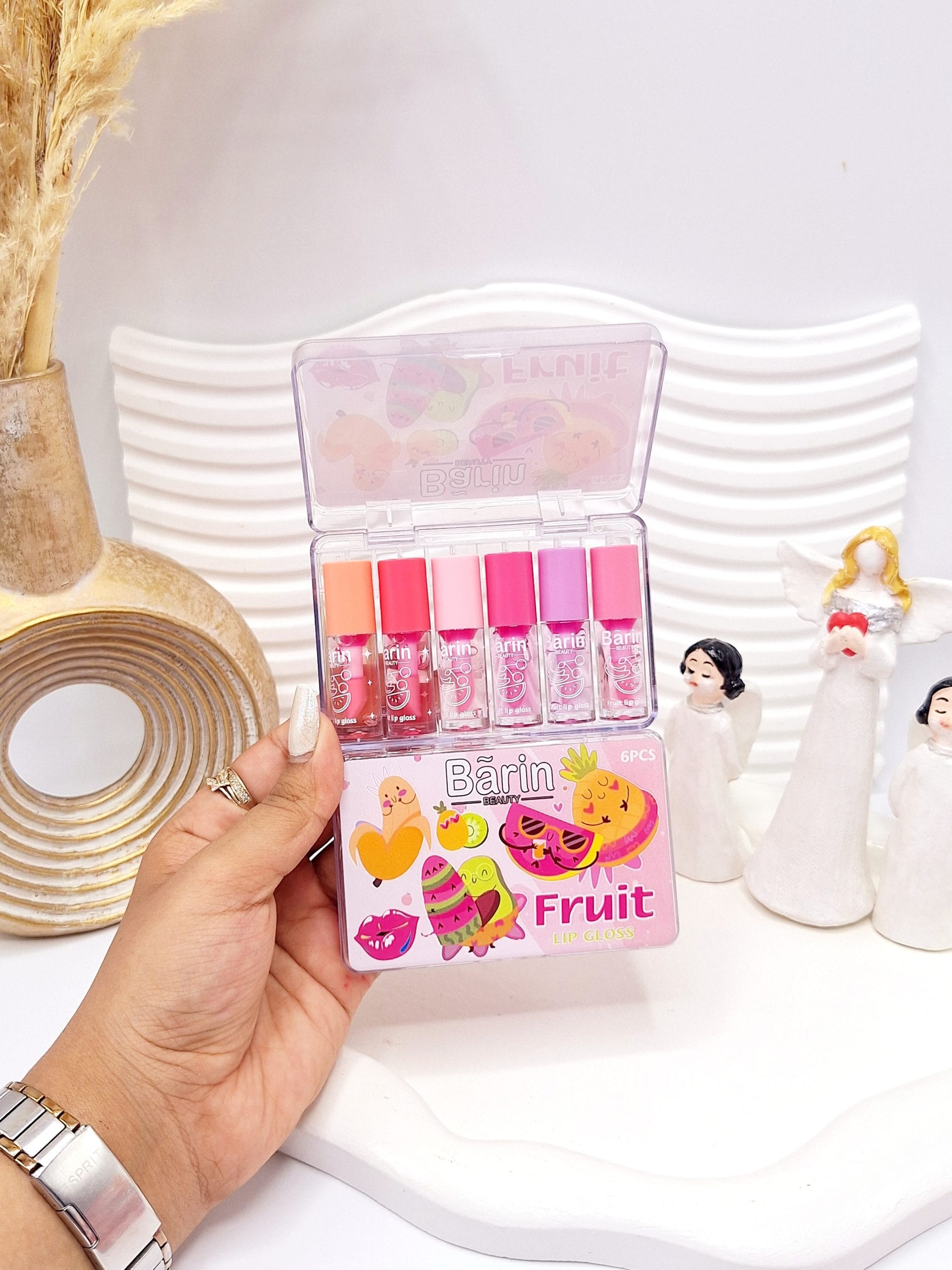 باکس 6 تایی لیپ گلاس طرح میوه های تابستانه برند Barin کد 1030