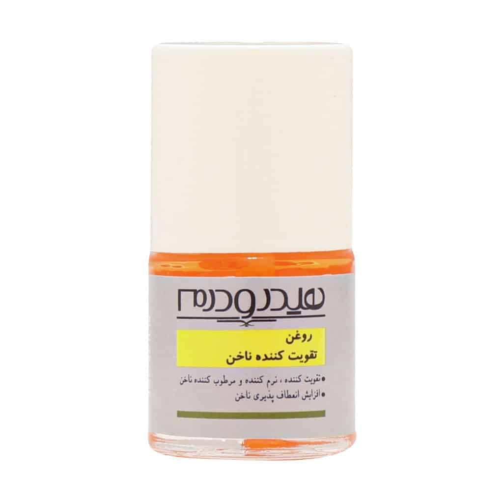 روغن تقويت کننده ناخن هيدرودرم با توجه به نياز افراد در اختيار مصرف‌ کنندگان قرار داده که کاملا طبيعی توليد شده و اثر نرم کنندگی و مرطوب کنند‌گی در سطح ناخن را حفظ می ‌کند. اين محصول حاوی کمپلکس تقويت کننده و مرطوب کننده روغن های بادام شيرين، گل گاوزبان، جوجوبا و دانه انگور و ويتامين های E و A است که اثرات مفيدی را روی ناخن اعمال می کند. روغن تقویت کننده ناخن هیدرودرم با عنوان تقويت کننده ناخن با حجم 8 ميلی ‌لیتر برای افرادی که ناخن ‌هايشان به مراقبت احتياج دارد مناسب است.