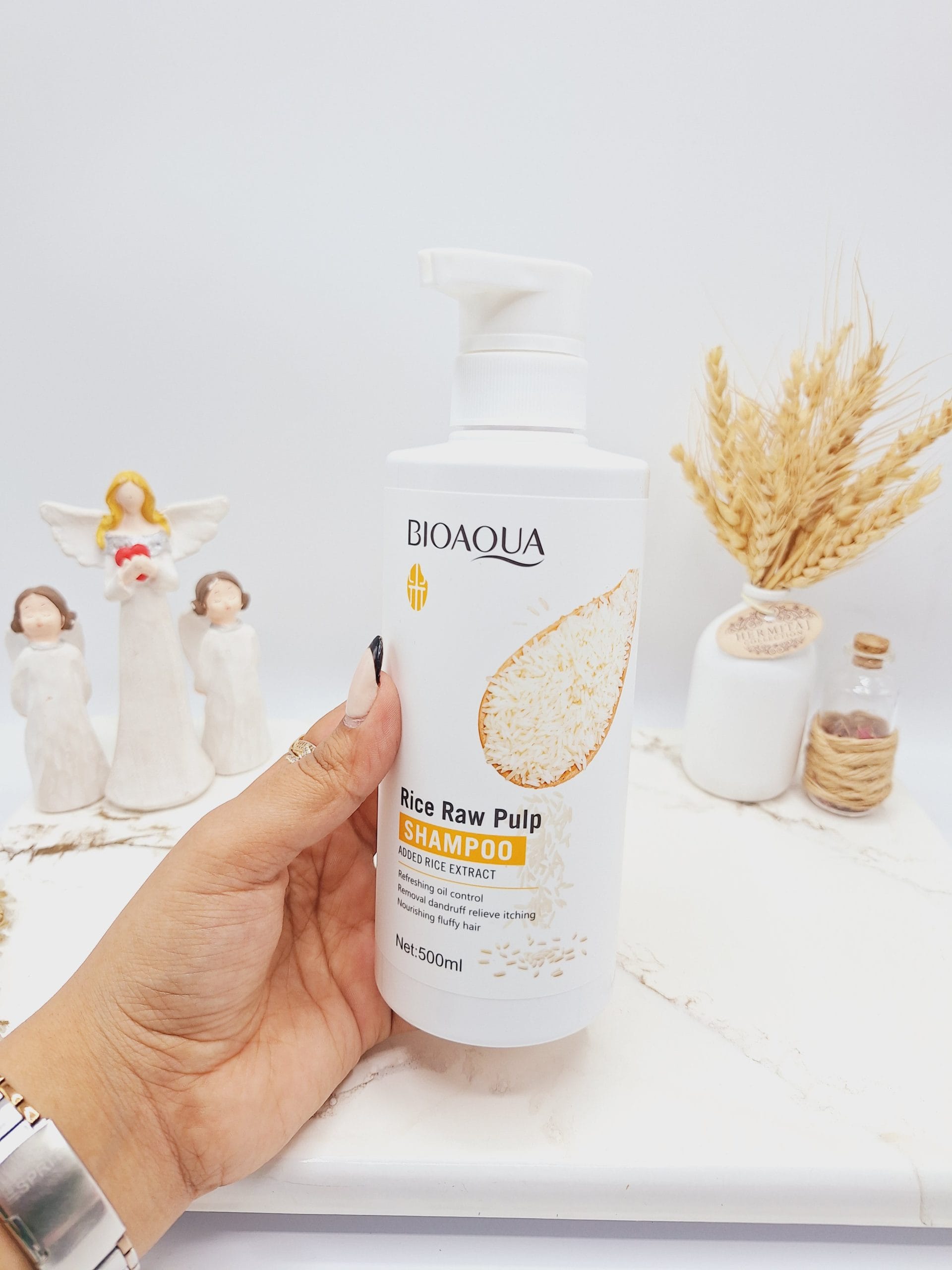 شامپو ضد شوره و کنترل کننده چربی و طراوت مو برنج بیوآکوا حجم 500 میل کد 1827