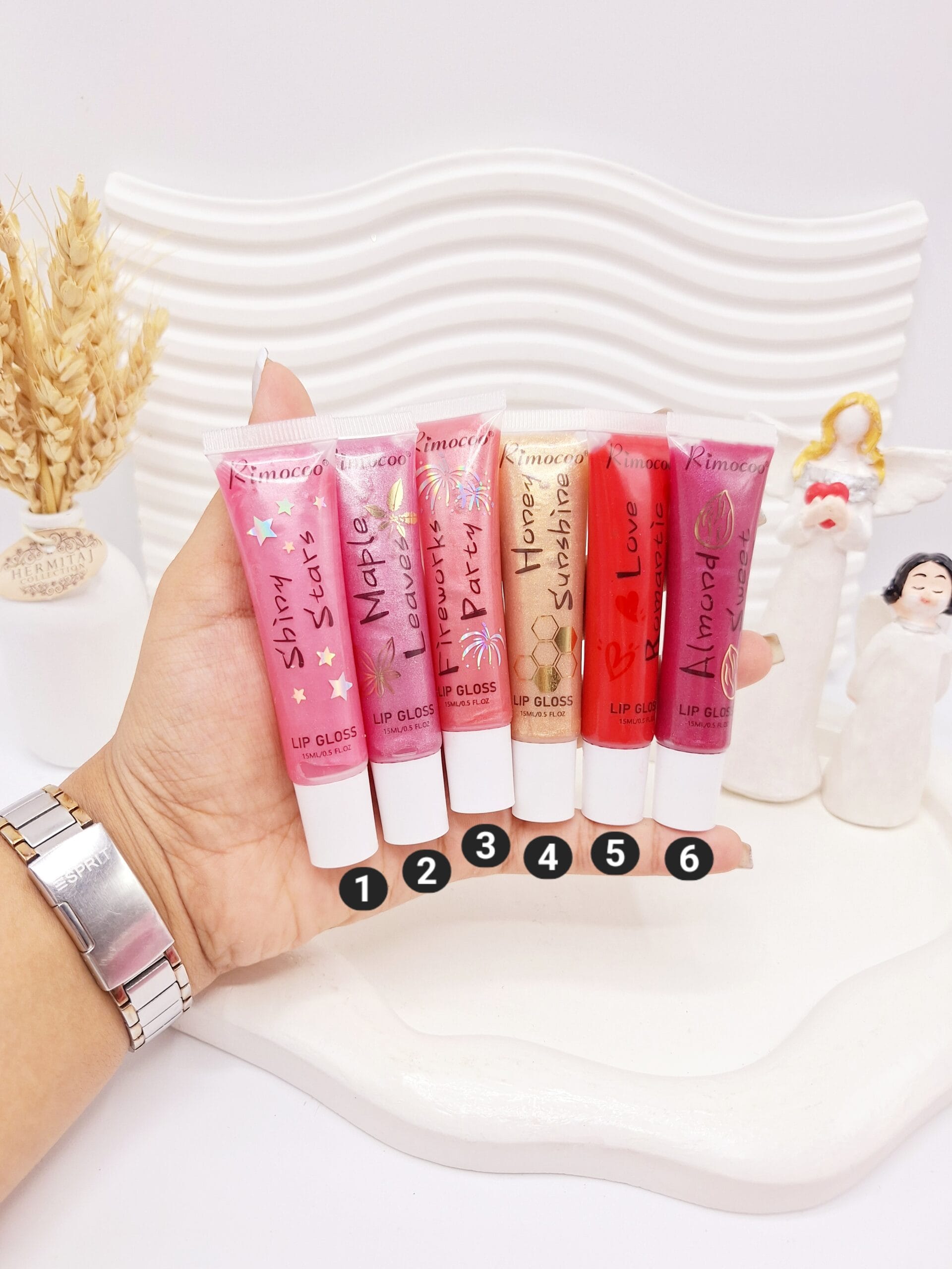 لیپ گلاس شاین دار ریموکو کد R1012 در 6 رنگ عالی با شاین فوق العاده روی لب و لطیف کننده لب با ماندگاری بالا و رایحه خوشبو می باشد.