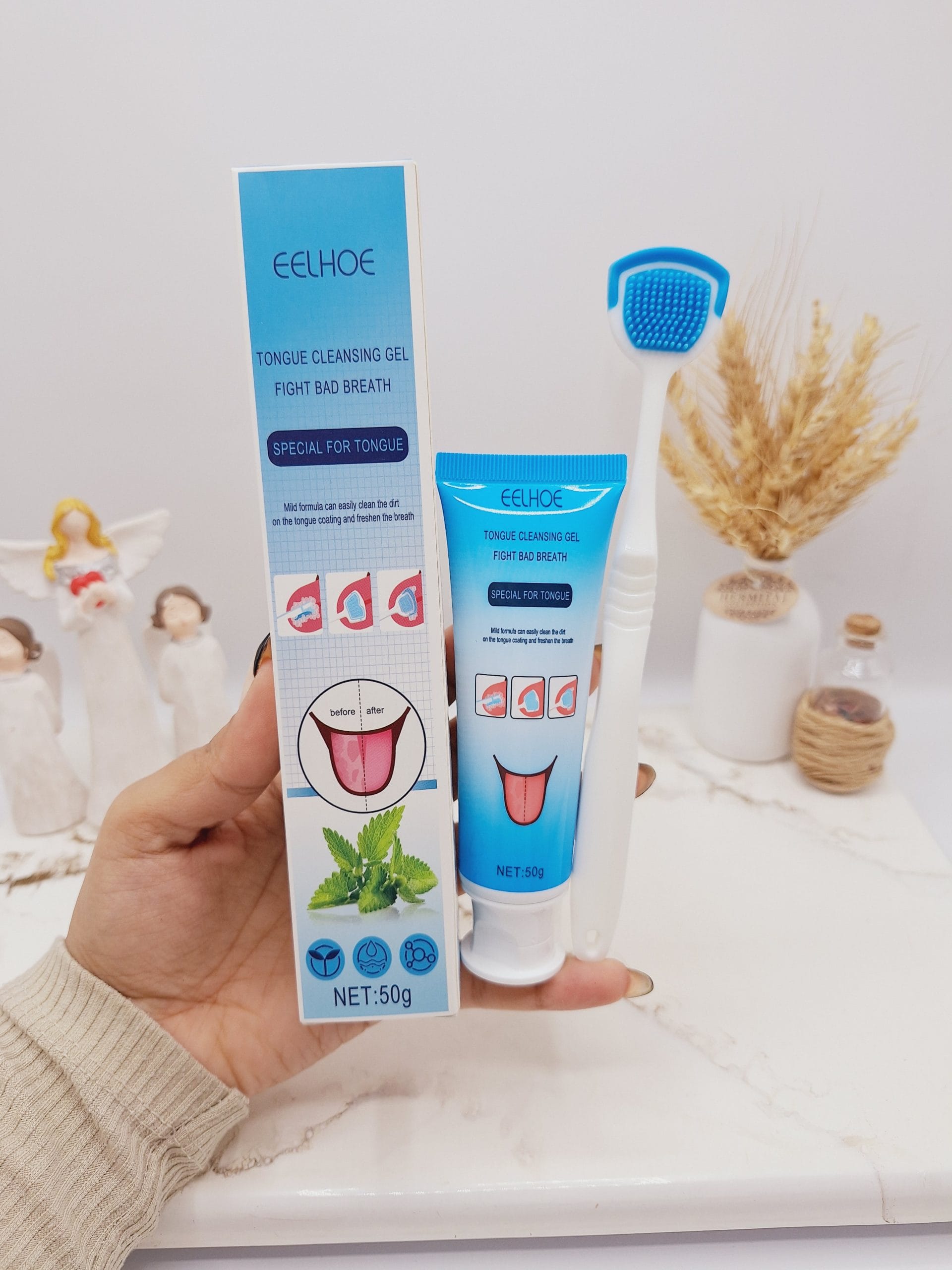 - ست زبان پاک کن با برس دو طرفه و ژل نعنایی