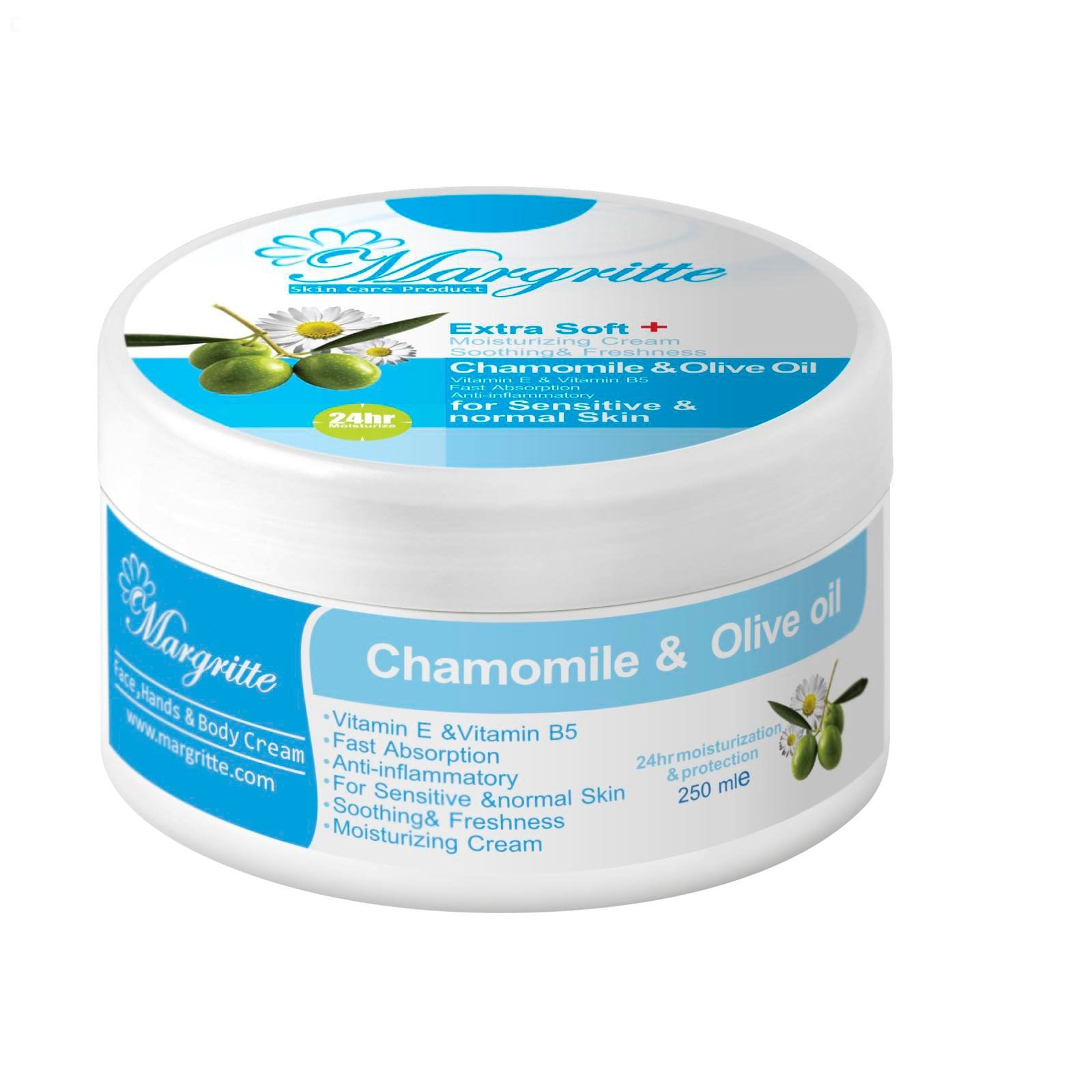 کرم مرطوب کننده زیتون و بابونه مارگریت با ترکیبات ویژه قادر است پوست را به طور عمقی و ۲۴ ساعته مرطوب نماید و برای صورت، دستها و بدن قابل استفاده است. روغن زیتون و بابونه موجود در این محصول به کاهش قرمزی، حساسیت و خستگی پوست کمک میکند و برای پوستهای حساس و نرمال یک گزینه مطلوب به شمار میآید. این محصول دارای ترکیبات بسیار ایمن و غیر کومدون زا بوده و هرگز باعث تحریک پوست نمیشود.