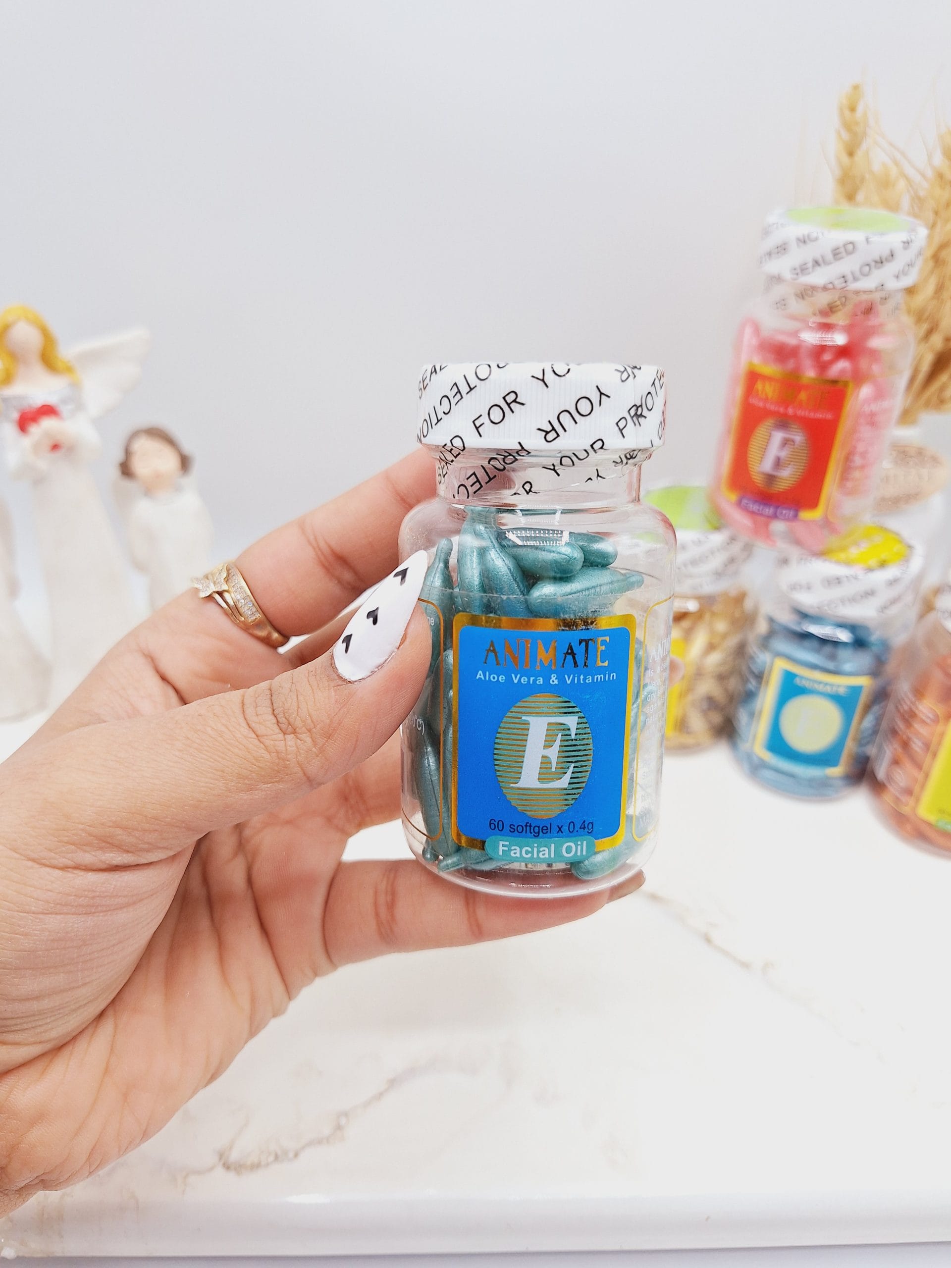 کپسول اتینول 60تایی ضد چین و چروک صورت و چشم دارای ویتامین E برند ANIMATE کد 0161