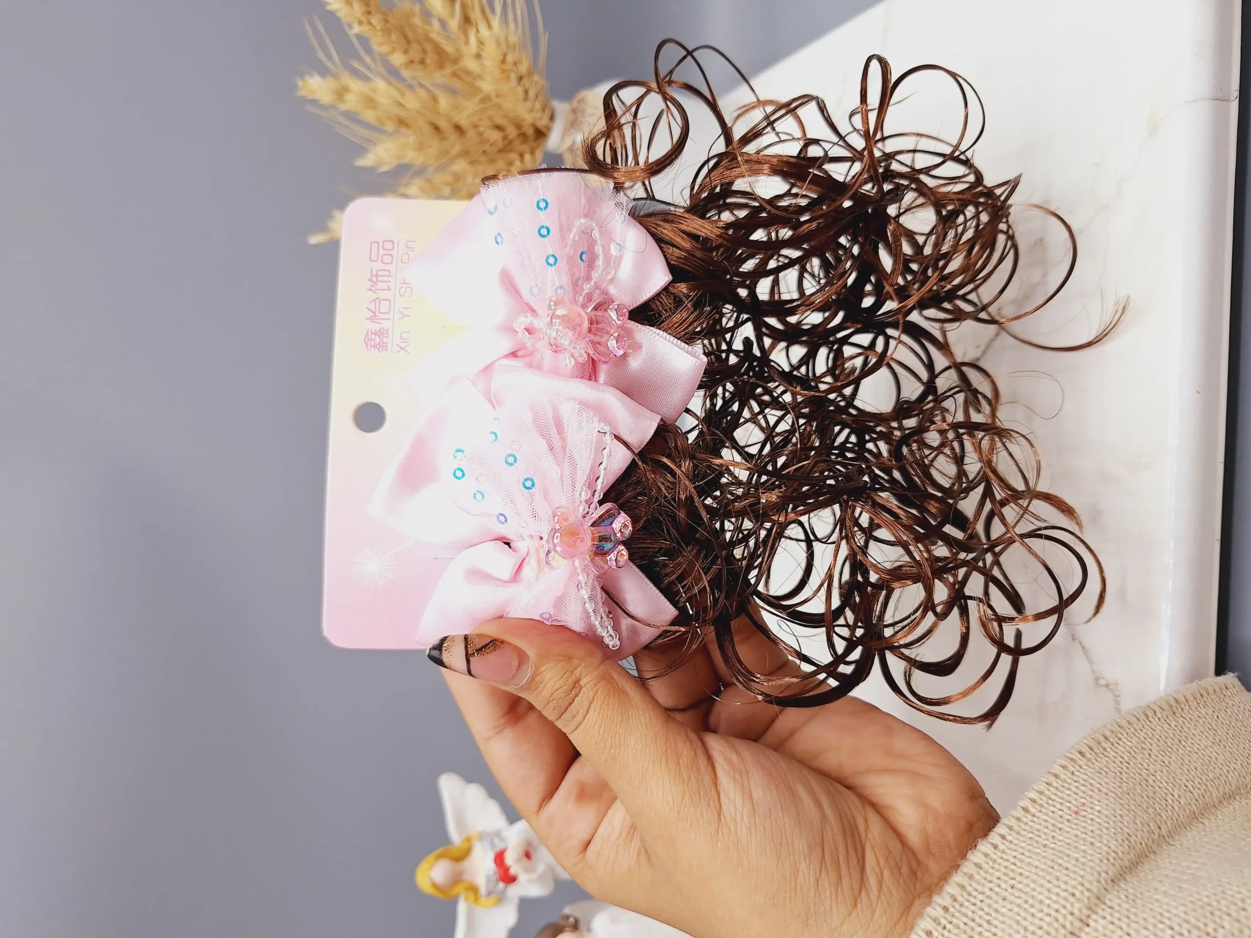 گیره مو دخترونه پاپیون طرح گل مرواريدی با موی مصنوعی (کارت دوتایی)